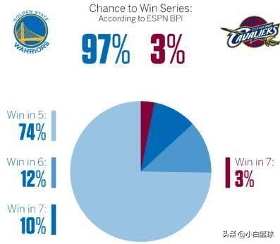 2016年总决赛前四场,骑士队1-3落后勇士,当时ESPN通过BPI综合战力指数的分析,勇士五场拿下总冠军的概率74%,六场拿下总冠军的概率12%,七场拿下总冠军的概率10%,也就是说这轮系列赛最大概率是五场结束,骑士队能在抢七中逆转取胜的概率只有可怜的3%。4月29日,有美国媒体回顾了当时的情况,他们用了四张图来证明16年骑士队能逆转多么的逆天。