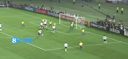可是正当德国来势汹汹要扳平比分的时候,又是那个“外星人”将德国在02年的世界杯冠军梦杀个粉碎!第79分钟,还是那个“跑不死”的克莱伯森,带球一路推进至前场右路后,里瓦尔多跑位过去一个“假接真漏”,弧顶位置罗纳尔多右脚推射远角,将比赛悬念杀死!巴西2-0领先德国!↓