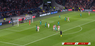 随后阿贾克斯里用角球取得领先,舍内开出右侧角球,德里赫特力压阿里冲顶破门,主裁在通过视频助理裁判提示后认定争抢位置中的多尔贝尔没有犯规情况,进球有效,1-0,阿贾克斯领先,总比分阿贾克斯2-0领先!