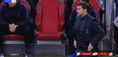补时阶段,场边的热刺主帅波切蒂诺神情凝重,略显焦急。