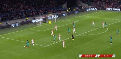 41分钟热刺反击中罗斯分球,孙兴慜停球过大被对方将球断下。2分钟补时后上半场结束,阿贾克斯暂时2-0,总比分3-0领先热刺。
