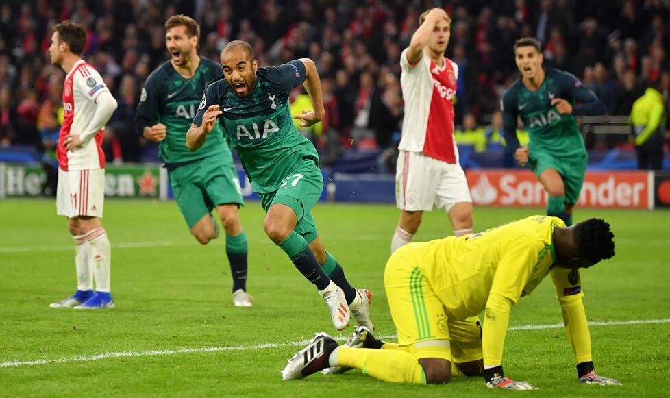 虎扑5月9日讯 北京时间5月9日凌晨03:00,2018-2019赛季欧冠半决赛次回合上演,阿贾克斯主场迎战托特纳姆热刺。上半场,德利赫特头球破门,孙兴慜中柱,齐耶什爆射扩大比分;下半场,卢卡斯5分钟内梅开二度将比分扳平,齐耶什中柱,维尔通亨头球中梁,卢卡斯压哨绝杀。最终,热刺客场3-2战术阿贾克斯两回合总比分3-3并凭借着客场进球优势晋级决赛。