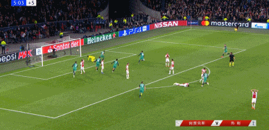 55分钟热刺扳回一球,热刺利用阿贾克斯任意球进攻打出反击,罗斯穿裆过掉德里赫特后长传,阿里扣过防守小卢卡斯直接插上领过皮球禁区内左脚低射得手,2-1,总比分3-1热刺落后!