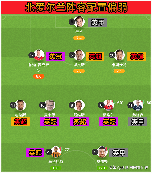 北爱尔兰那都是什么球员啊?三个英超的带一堆英冠的外加几个英甲、苏超的,全队身价不足意大利的十分之一。