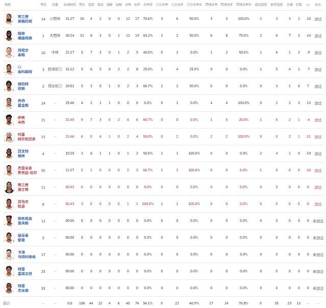 新奥尔良鹈鹕锡安-威廉森31分8板3助1帽,英格拉姆30分4板2助,伊夫-米西9分7板3助2帽。