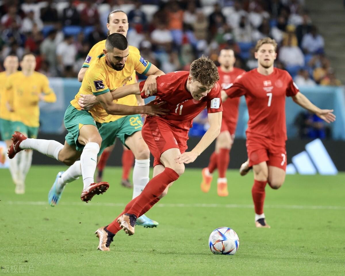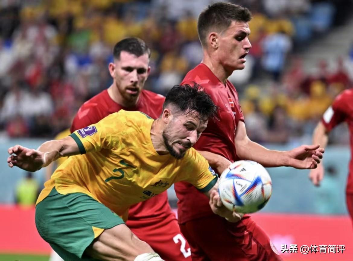 澳大利亚队的小组赛晋级之路可谓曲折,在首战中他们被法国打了个1-4,不过,随后的两场比赛澳大利亚愈战愈勇,以两个1-0的比分分别击败突尼斯和丹麦,尤其是在与丹麦队的比赛中,袋鼠军团展现了铁血的防守和高效的反击。