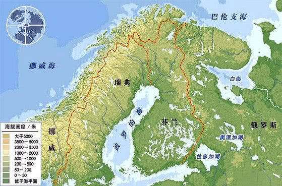 位于欧洲北部斯堪的纳维亚半岛的芬兰共和国南临芬兰湾,西濒波的尼亚湾,与瑞典、挪威、俄罗斯接壤。国土面积约为33.8万平方公里的芬兰有着长达1100公里的海岸线,芬兰内陆水域面积约占全国总面积的10%左右。芬兰有岛屿约17.9万个、湖泊约18.8万个,因此素有“千岛之国”、“千湖之国”的称谓。全国1/3左右的土地位于北极圈以内的芬兰是全球难得的欣赏极光的旅游胜地。