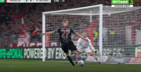 第45+4分钟,拜仁再次打出快速反击,莱默尔反越位接球进入禁区右侧横扫门前,门将和后卫挡了一下但没把球打远,跟进的穆西亚拉轻巧捅射破门,拜仁4-0美因茨,穆西亚拉上半场就完成帽子戏法。
