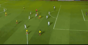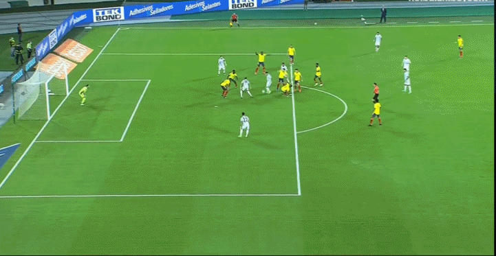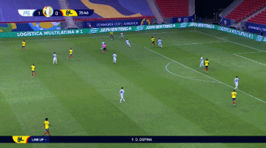 上半场第45分钟,哥伦比亚在禁区内完成2连击,迪亚斯的射门被门将扑出,随后队友的补射又被佩塞利亚挡出,哥伦比亚和进球失之交臂。