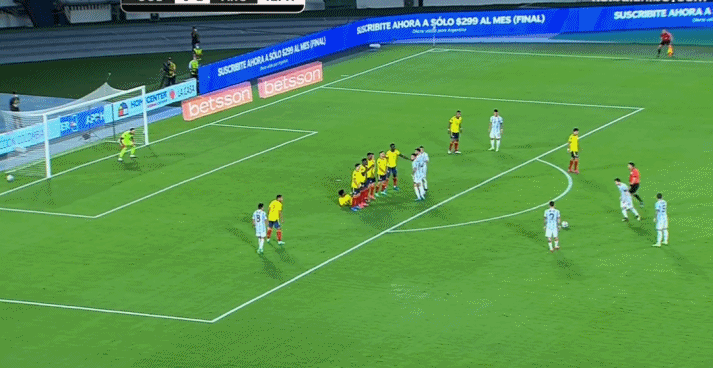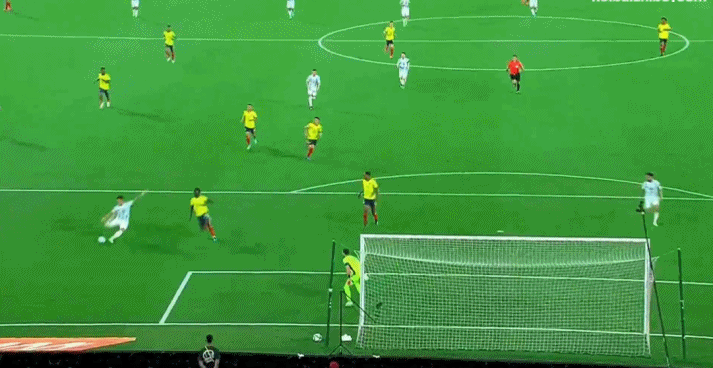 第10分钟,阿根廷率先打破僵局。梅西主罚禁区前沿任意球,左脚直接射门,球划出弧线后击中横梁下沿进了网窝,世界波,阿根廷1-0哥伦比亚!