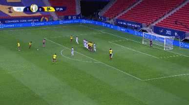 第87分钟,弧顶处梅西被放倒,阿根廷获得任意球机会,梅西左脚兜射被人墙挡出。随后,哥伦比亚反击,佩泽拉犯规被黄牌警告。↓