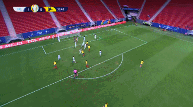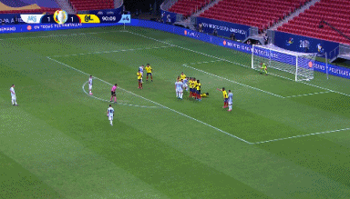 第70分钟,穆里略犯规,裁判判给阿根廷一个位置不错的任意球,梅西站在球前。梅西直接开到后点,奥塔门迪头球摆渡落到门前,被对方凌空一脚解围了。