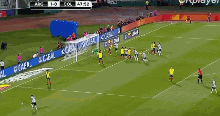 第61分钟,哥伦比亚扳平比分!任意球快发到禁区里左路,迪亚兹带球生吃佩泽拉,左脚挑射球门右侧得分!哥伦比亚1-1阿根廷!↓
