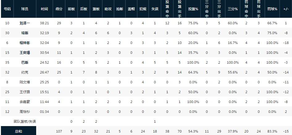 四川丰谷酒业爱德蒙-萨姆纳37分5板5助,马库斯-亨特33分2板7助;浙江稠州金租刘泽一29分4板2助,盖比-约克21分3板2助。