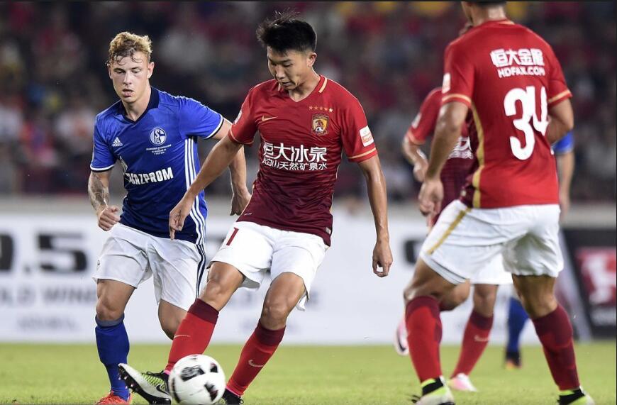 半场结束,两队互交白卷,广州恒大0-0沙尔克04,第26分钟韩鹏飞的头球解围差点自摆乌龙。