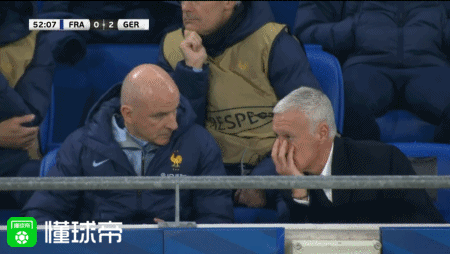第52分钟,两球落后,德尚和助理教练商讨战术