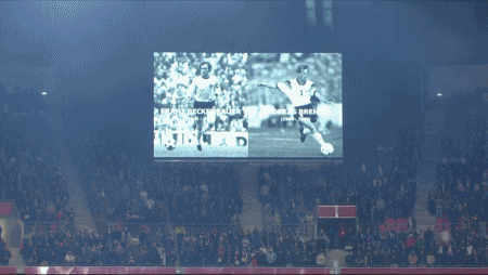 双方球员为去世的两位德国传奇贝肯鲍尔和布雷默默哀