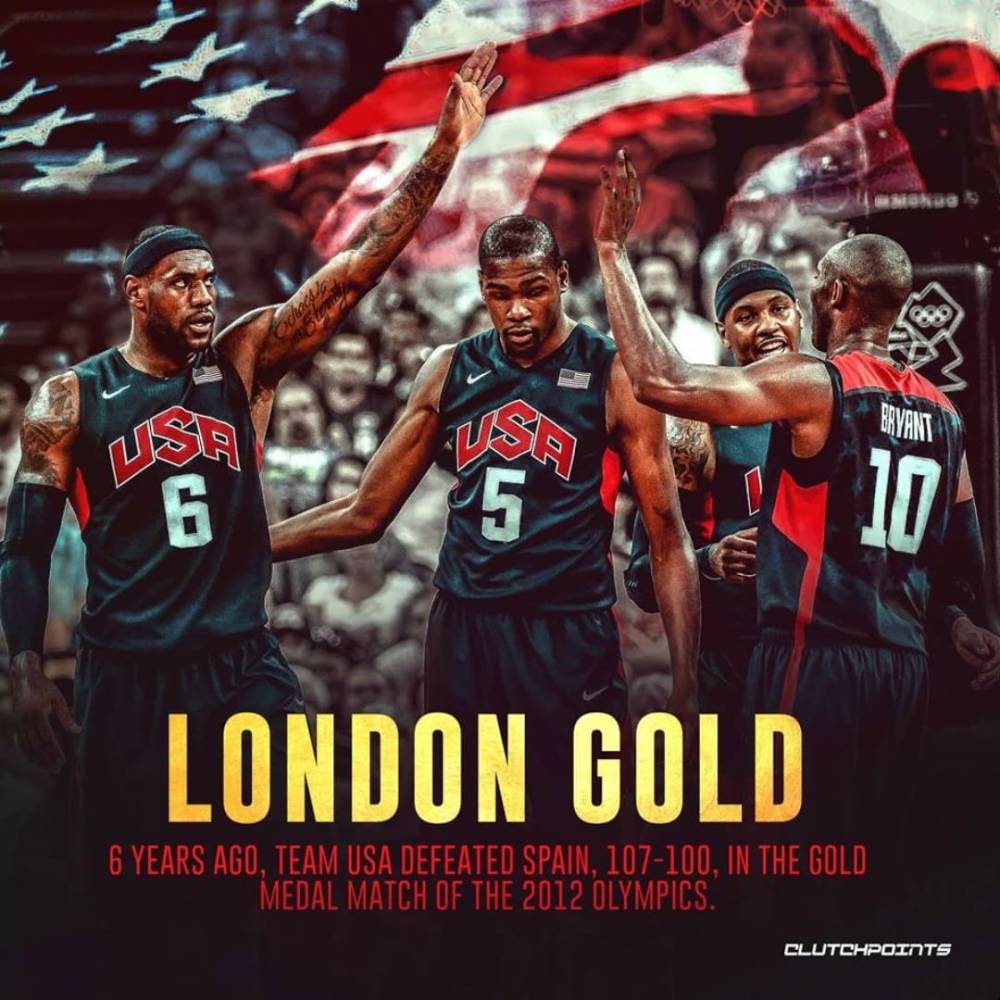 直播吧8月13日讯 在美国时间2012年8月12日,六年前,历史上的今天。美国男篮以107-100击败了西班牙,夺得了奥运会冠军。