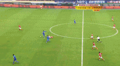 身着红色球衣的广州恒大开场就利用前场任意球由高拉特攻进一球,但被判越位在先。但这也给申花防线敲响警钟!