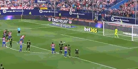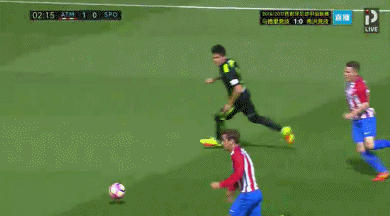 马竞反而在第28分钟率先利用任意球破门。27分钟,萨乌被阿尔瓦雷斯铲倒,马竞赢得一个位置极好的前场任意球。格里兹曼一脚射门直挂死角,球从横梁与右侧立柱的交界处飞了进球,希洪竞技门将对此球可谓毫无办法。马竞全场第一脚射门便取得了1比0的领先。