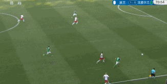 第30分钟,波兰队皮什切克在后路强行超车过掉北爱尔兰后卫,横穿门前,米利克得球横拨闪出角度后一脚射门,可惜球稍稍高出横梁。