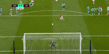 上半场补时第2分钟,佩佩打门造成恩迪迪手球,阿森纳获得点球,拉卡泽特主罚一蹴而就,帮助球队2-1反超比分。