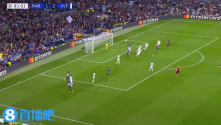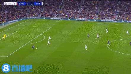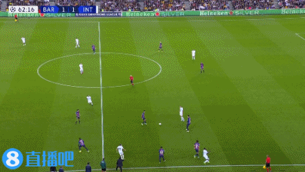 下半场比赛回来,第49分钟,国米扳平比分!又是一次不错的反击机会,一次中场斜传球给到禁区内,巴雷拉抢在皮克身后打门得手。巴萨1-1国米。↓