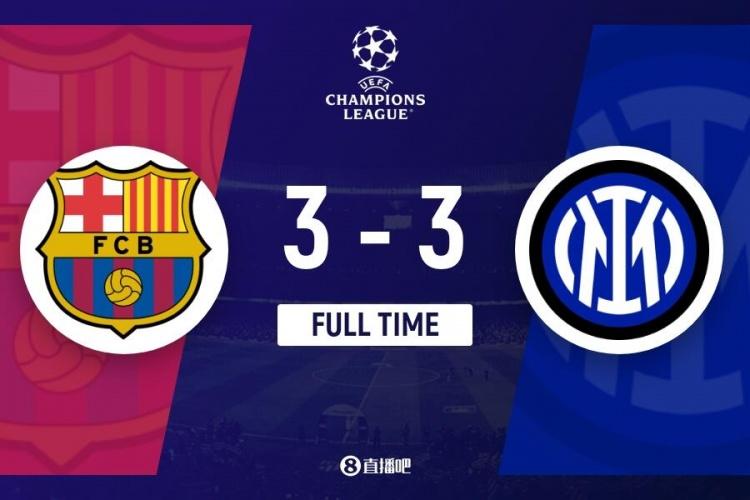 全场比赛结束,巴萨在主场3-3战平国米保留了晋级希望。