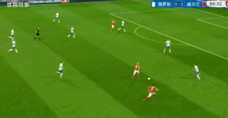 第39分钟,贝尔前场中路的球,带球长途奔袭,面对两名俄罗斯防守球员丝毫不慌张,连过两人杀到禁区左侧,左脚低射被阿金费耶夫没收,大圣迫切希望连续三场取得进球。