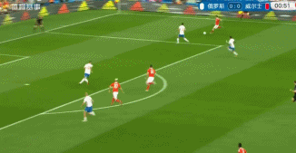 第54分钟,俄罗斯队后防再次出现重大失误,威尔士反击,拉姆塞前场左侧得球一记低平球找到贝尔,大圣禁区里左侧得球,面对出击的阿金费耶夫,一记挑射,皮球被阿金费耶夫挡出右侧底线。