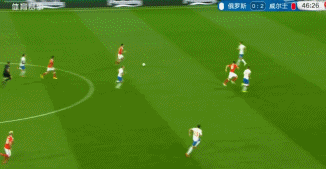 下半场易边再战,第46分钟威尔士中场断球反击,贝尔得球长途奔袭,单骑闯关杀到禁区里左侧,一脚低射,皮球被阿金费耶夫没收。
