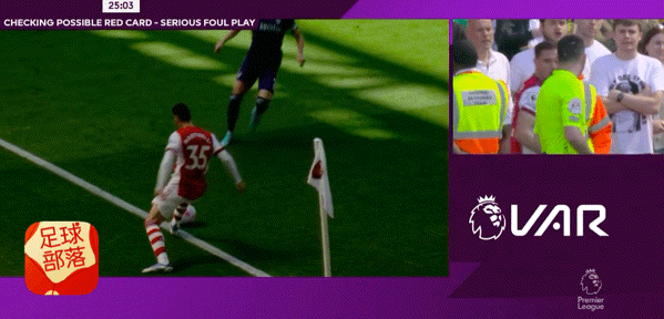 第25分钟,马丁内利角旗区附近护球,利兹联球员艾林双脚离地飞铲将马丁内利放倒,主裁判在观看VAR之后直接出示红牌将艾林罚下!