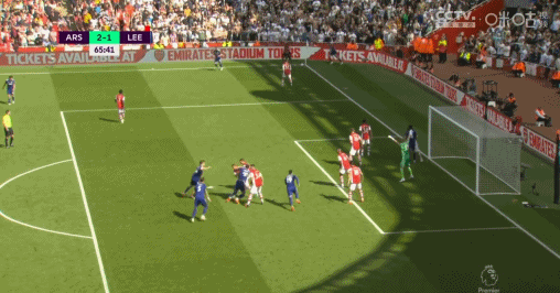 第38分钟,阿森纳获得禁区外右侧的任意球,厄德高主罚直接打门,皮球被门将一挡,随后被迭戈-略伦特在门线上解围。上半场比赛结束,阿森纳暂时2-0领先利兹联。