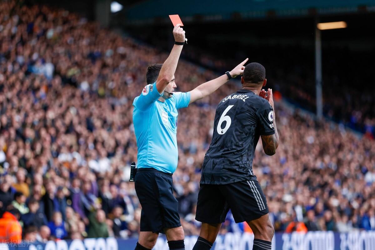 第91分钟,班福德在背后撞倒了加布里埃尔,后者抬腿报复动作将班福德踢倒,裁判将加布里埃尔红牌罚下,但观看VAR后又改判黄牌。