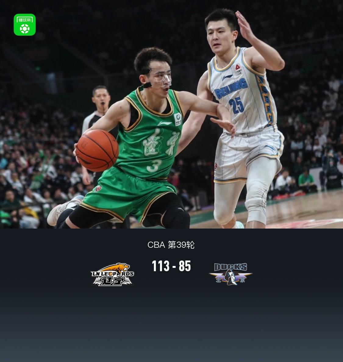 第四节辽宁凯尔-弗格拿下7分,北京泰-利夫拿下5分,最终辽宁113-85战胜北京