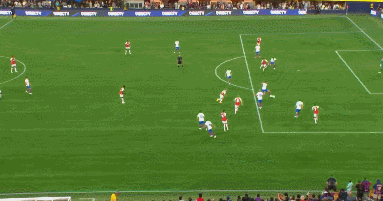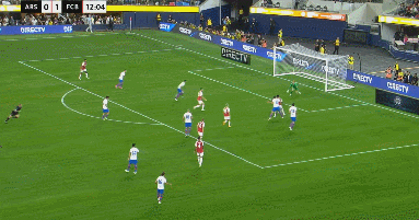 第43分钟,萨卡接球从右肋突入禁区,过人后在底线前将球挑向中路,厄德高头球攻门,哈弗茨跟上垫射将球打进,阿森纳2-2巴萨。