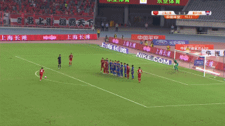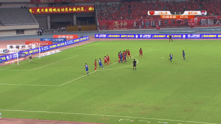 第77分钟,孔卡禁区弧顶处左脚任意球骗过门将,皮球划出优美弧线直接调入球门右下角,4-3,上港反超比分。
