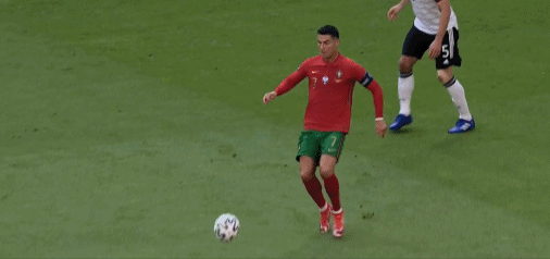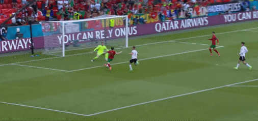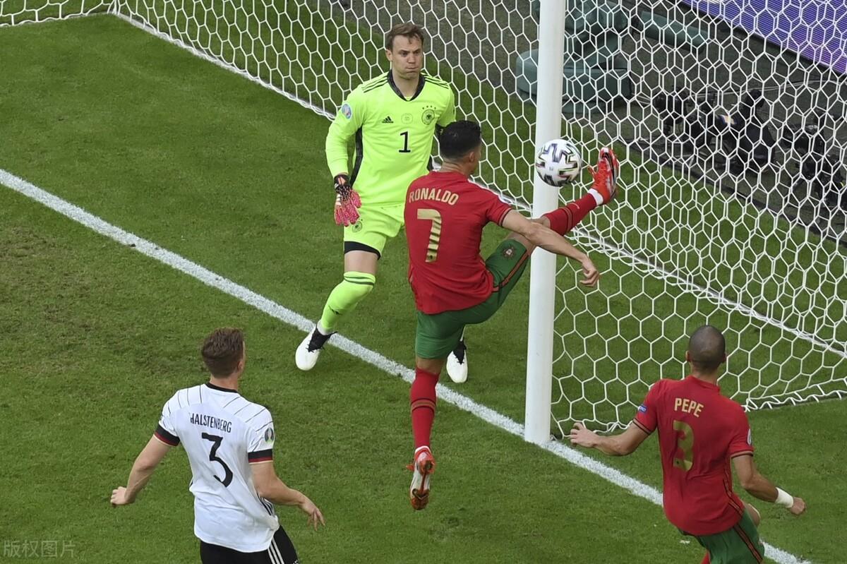 这是C罗对德国队打进的第一个球,他的欧洲杯进球数已经达到12球。