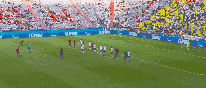 第54分钟,C罗主罚禁区前偏左位置的任意球,他的大力轰门稍稍高出横梁。