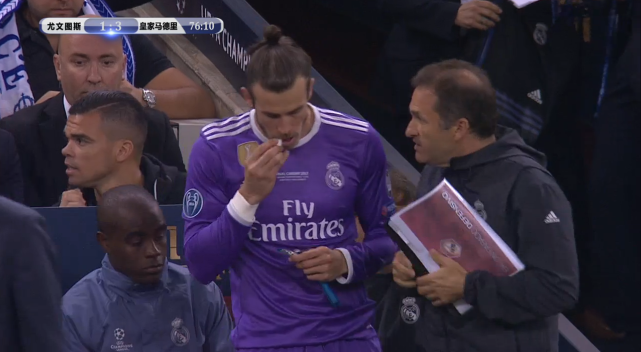 比赛第76分钟,本泽马下场,换上贝尔。贝尔因伤病未能首发,他终于踏上了家乡的欧冠赛场。