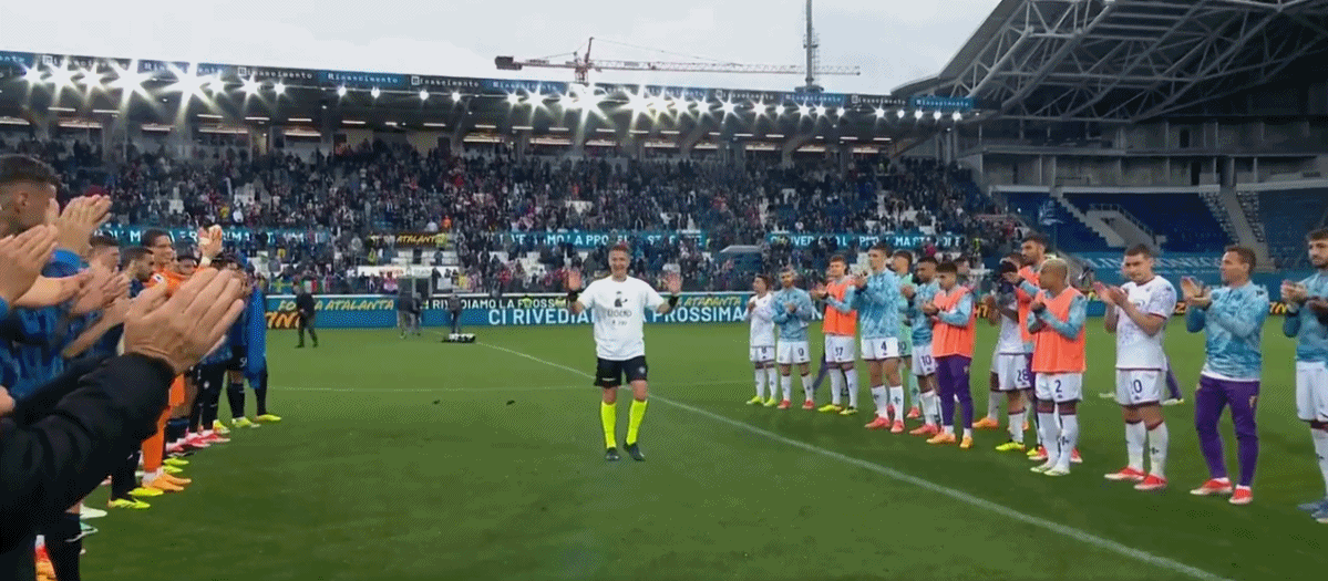 奥尔萨托执法完他的最后一场意甲联赛,现场全体人员为他举行告别仪式