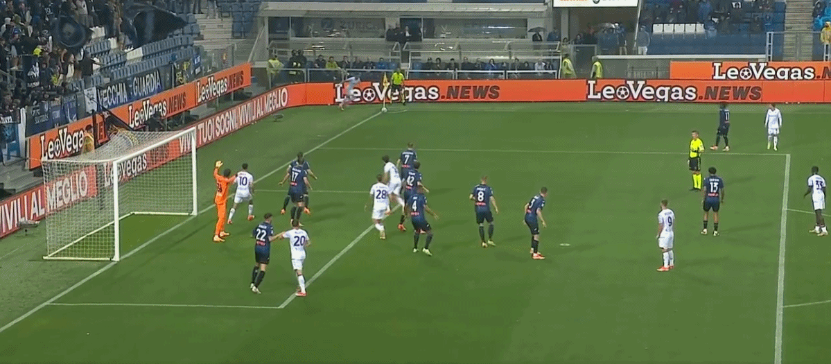 第32分钟,斯卡尔维尼禁区外远射破门!亚特兰大2-2