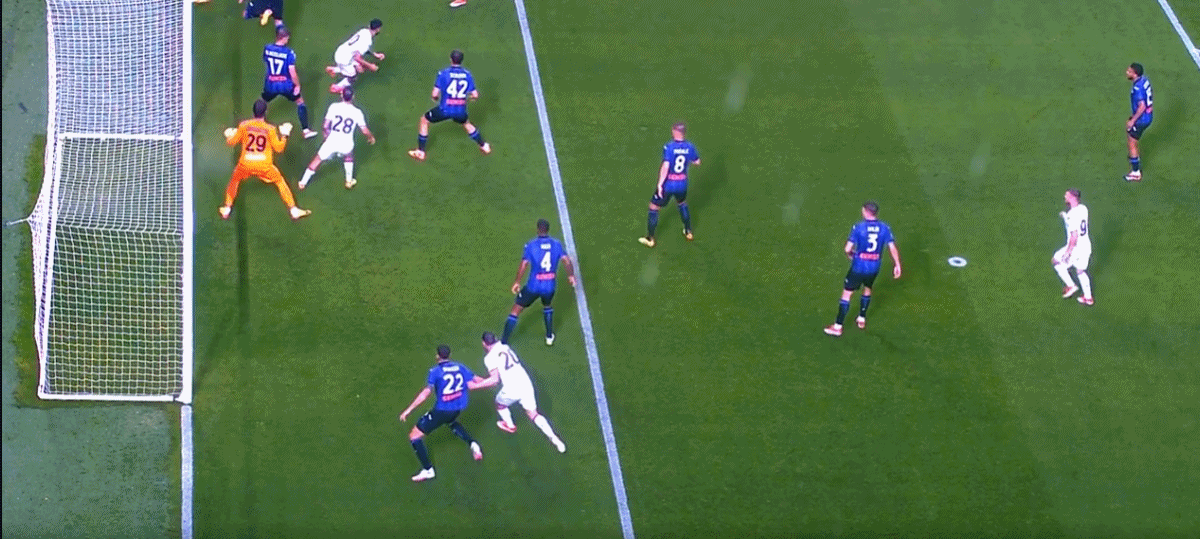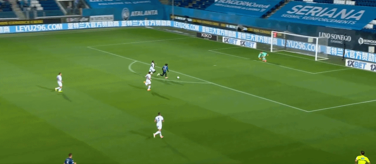 第12分钟,德凯特拉雷送出直塞,卢克曼挑射破门!亚特兰大1-1