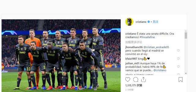 比赛结束后,C罗鼓励球队,在社交网络上发文写道,“这是一个艰难的夜晚。现在我们要继续相信自己,战斗到最后。”值得一提的是,坚持到底也是尤文球迷票选出的格言。
