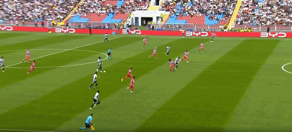 第10分钟,维阿右路传中,洛卡特利包抄打门被挡出底线