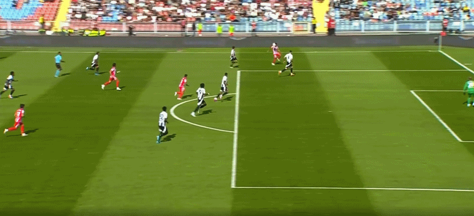 第38分钟,瑟洛特头球攻门,皮球被门将没收