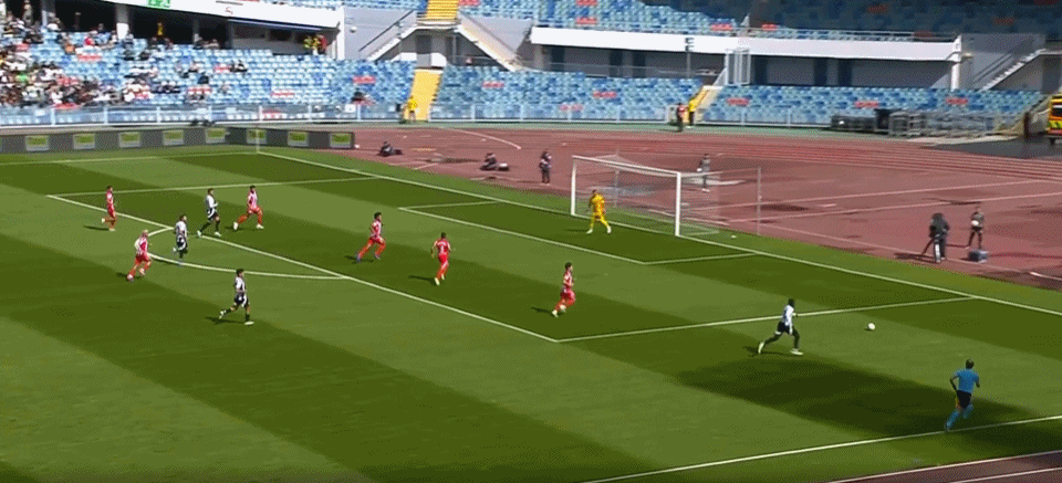 第90+1分钟,朱利亚诺-西蒙尼禁区左侧低射,皮球被门将挡出