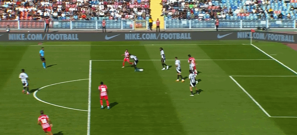 第28分钟,加蒂禁区外远射,皮球偏出底线