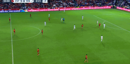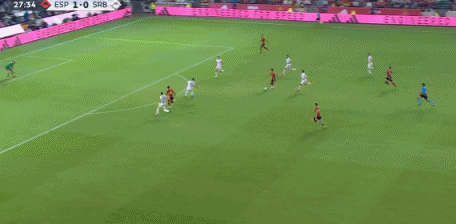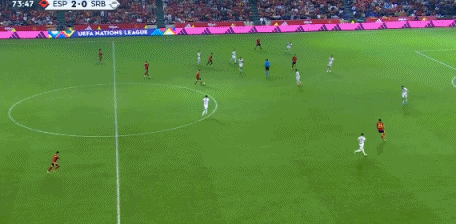 第65分钟,法比安巧妙分球,莫拉塔跟进推射入网!西班牙2-0塞尔维亚