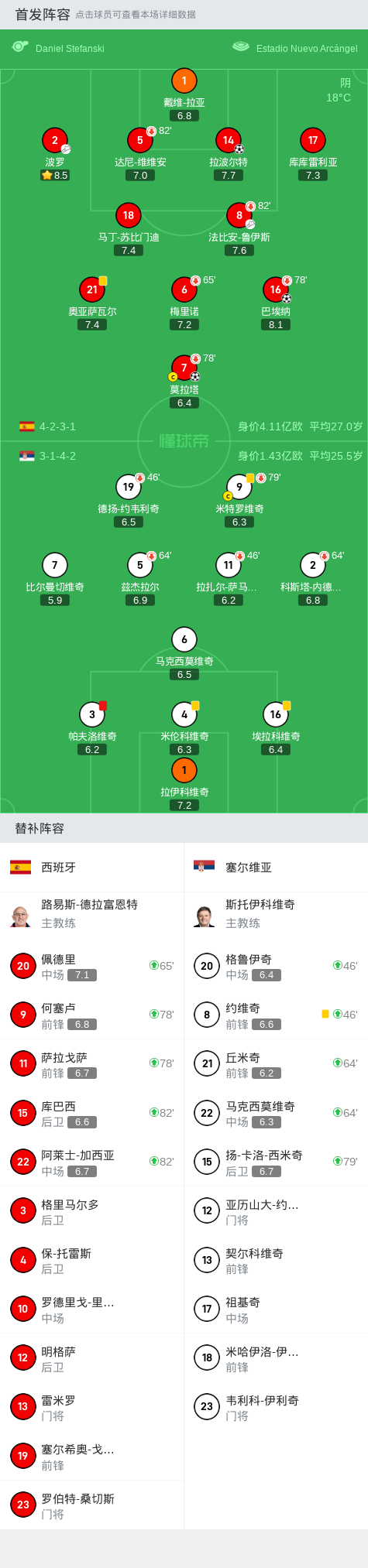 第5分钟,完美开局!波罗传中,拉波尔特头球破门,西班牙1-0塞尔维亚